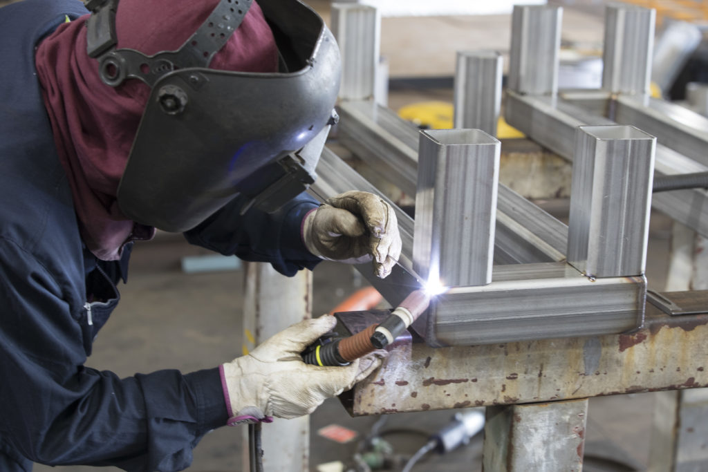 本社工場にて配管溶接